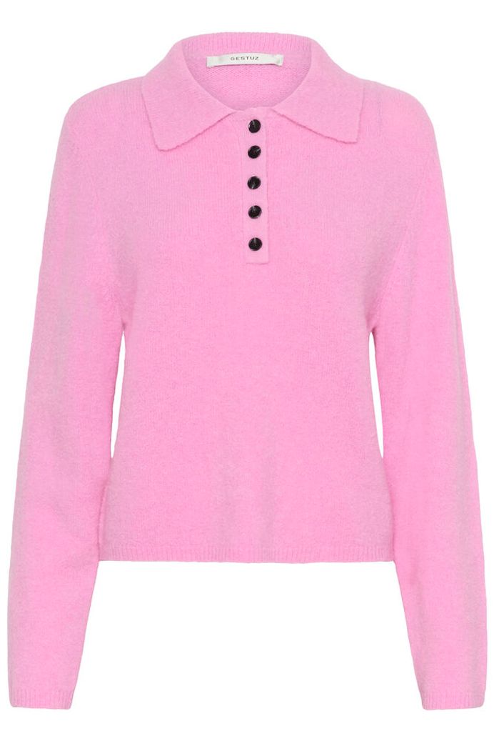 I alpha kvalitén som blivit en sådan favorit ifrån Gestuz har vi nu fått en ny tröja. Med knappar fram och krage. I en underbar rosa färg!