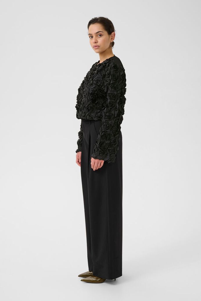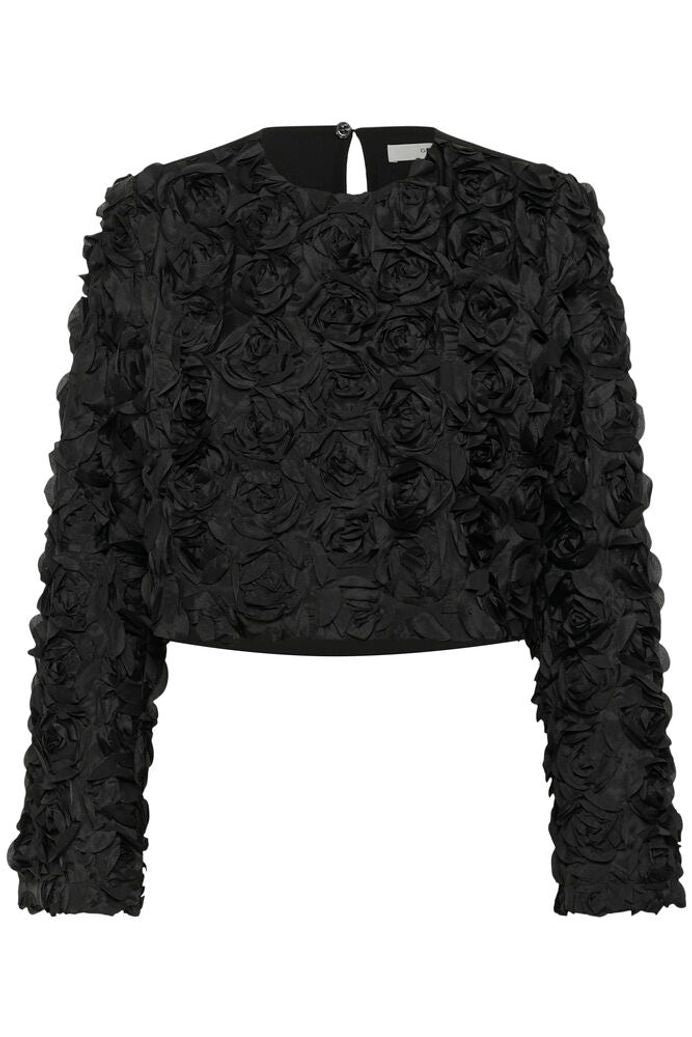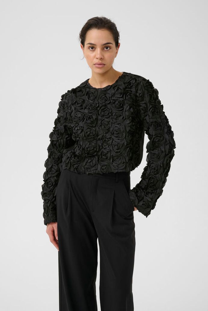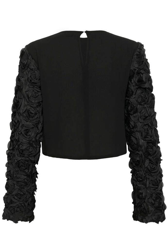 Blus med rosor är ju verkligen så fint! Som denna ifrån Gestuz. En kortare modell med 3D rosor i fram och på ärmarna och en halv transparens i bak.