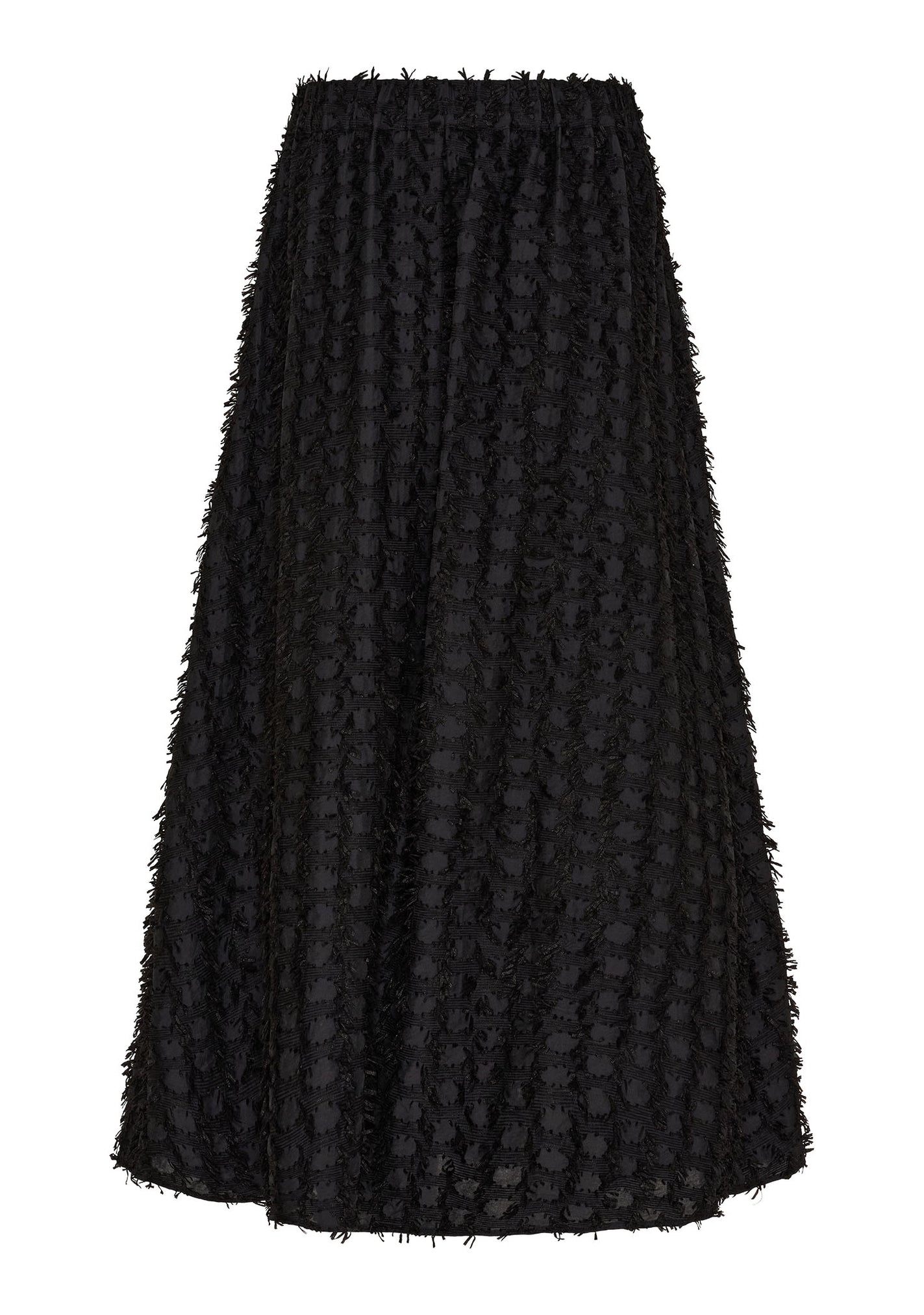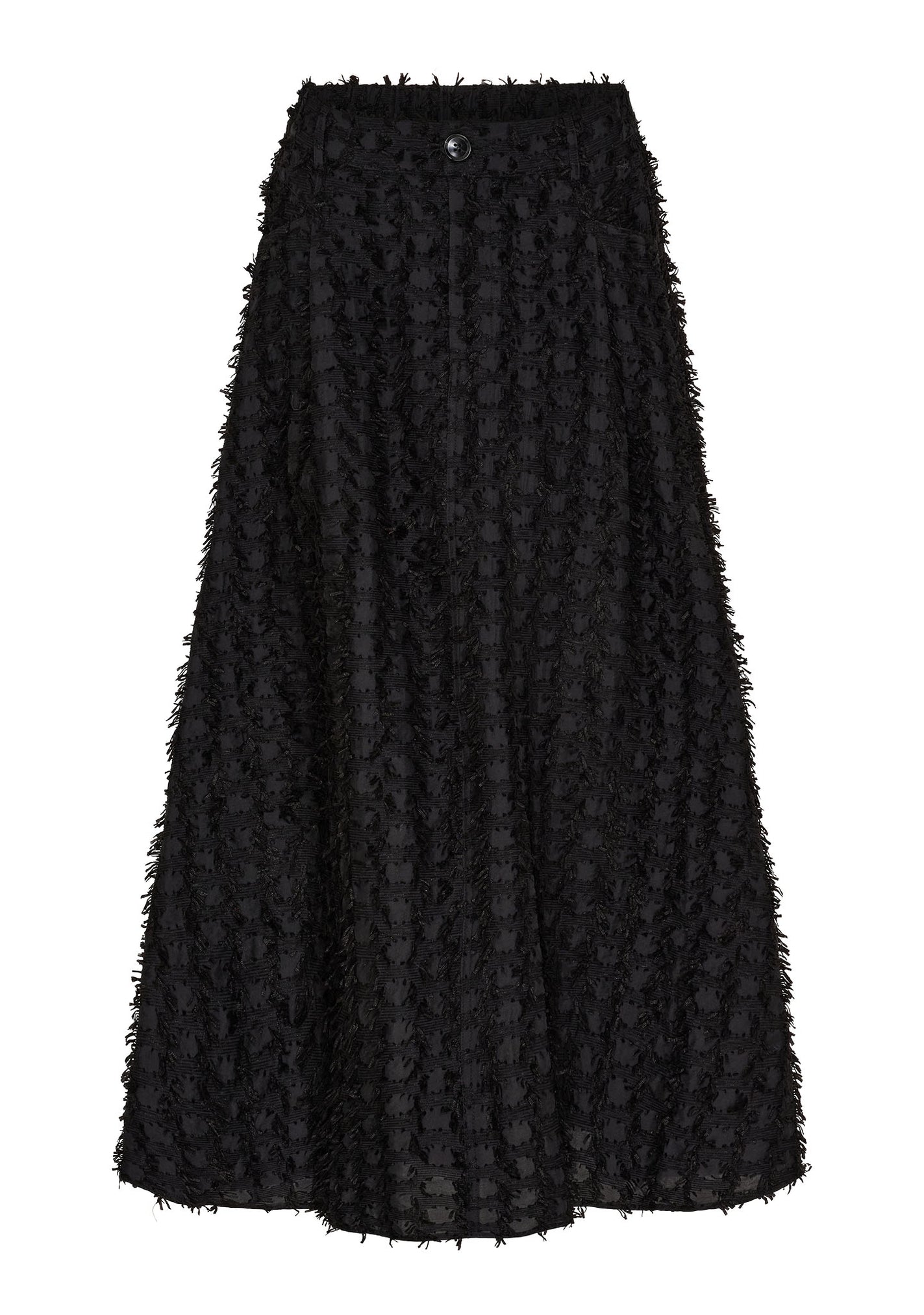Kjol med struktur livar ju verkligen upp! Som denna fina ifrån Isay. En aställd modell som går upp i midjan och har både gylf och linning. Finns en urfin jacka att matcha med.