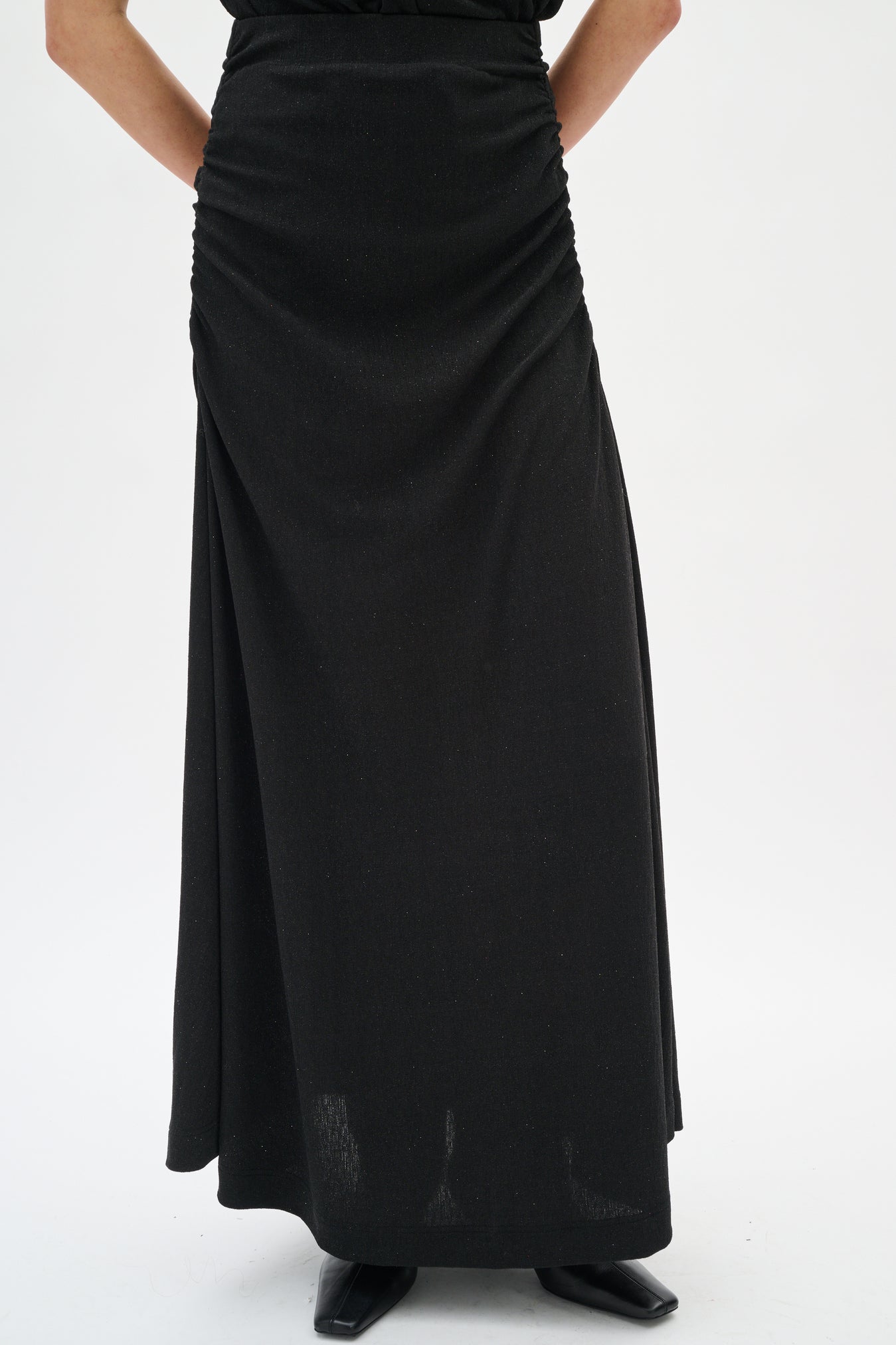 Denna kjol ifrån Inwear har ett fint glitter skimmer i sig. Matcha med toppen för ett helt set!. Stretchig kvalitet med rynk på sidorna som ger en fin siluett. Hög i midjan och lång.