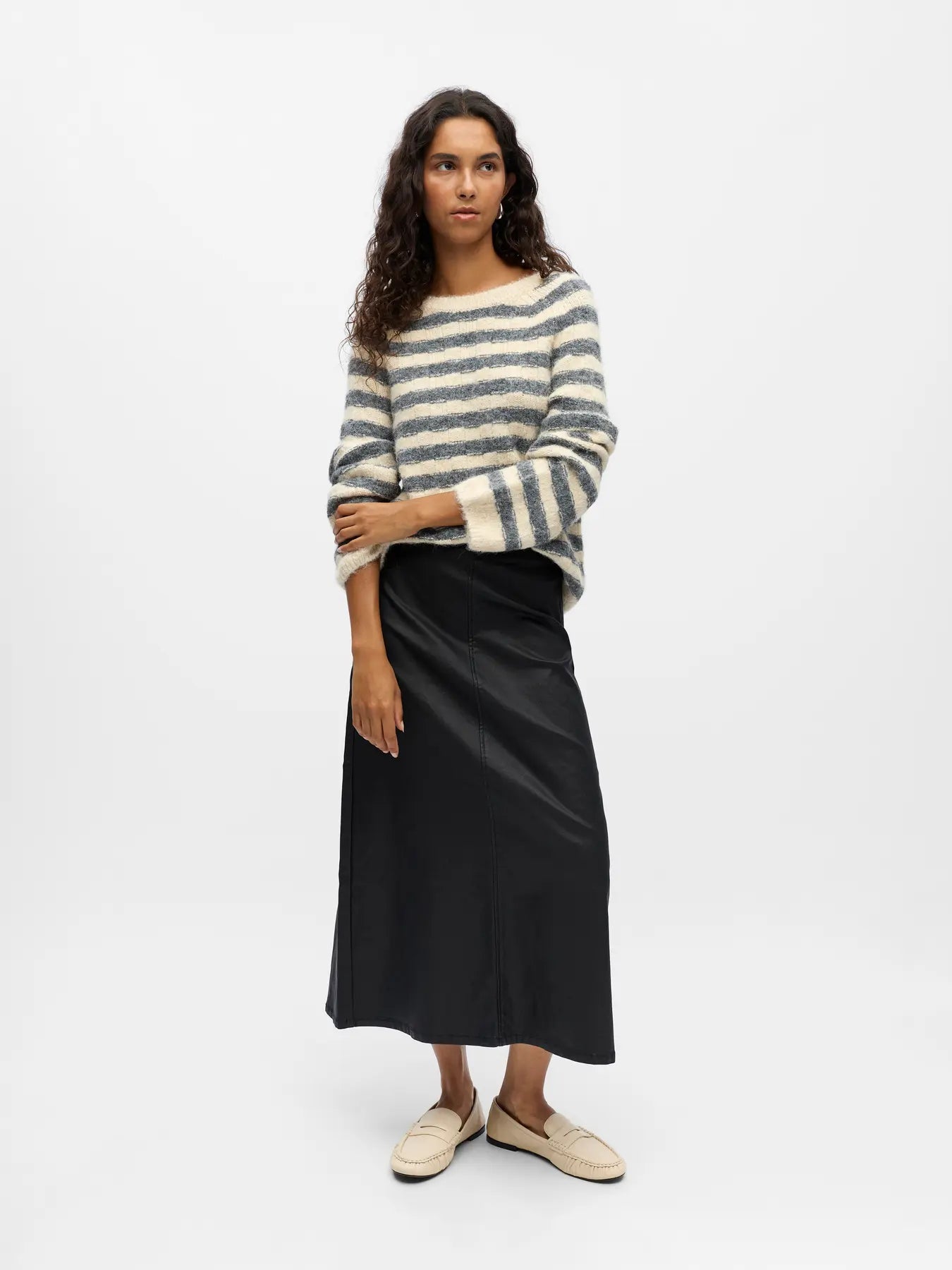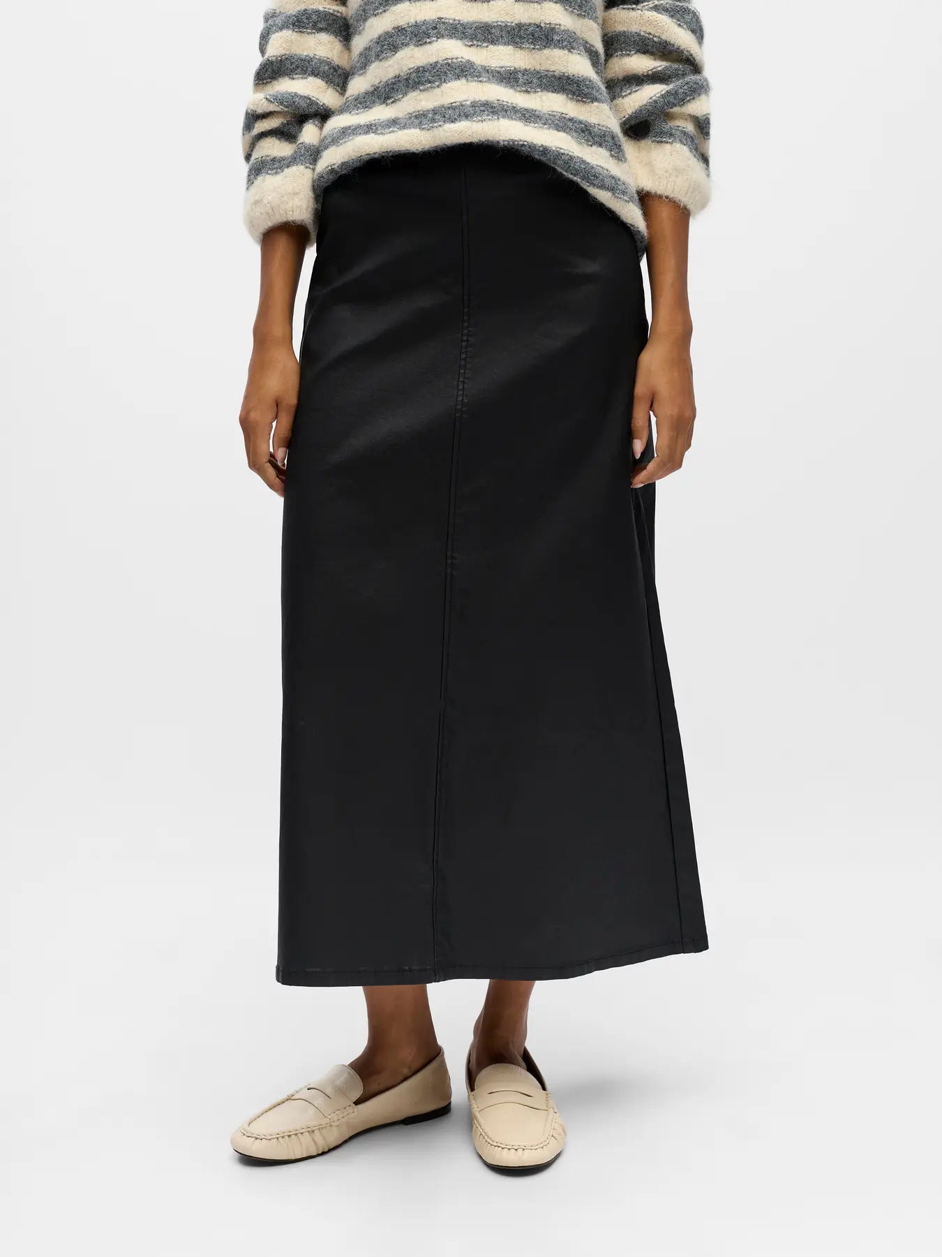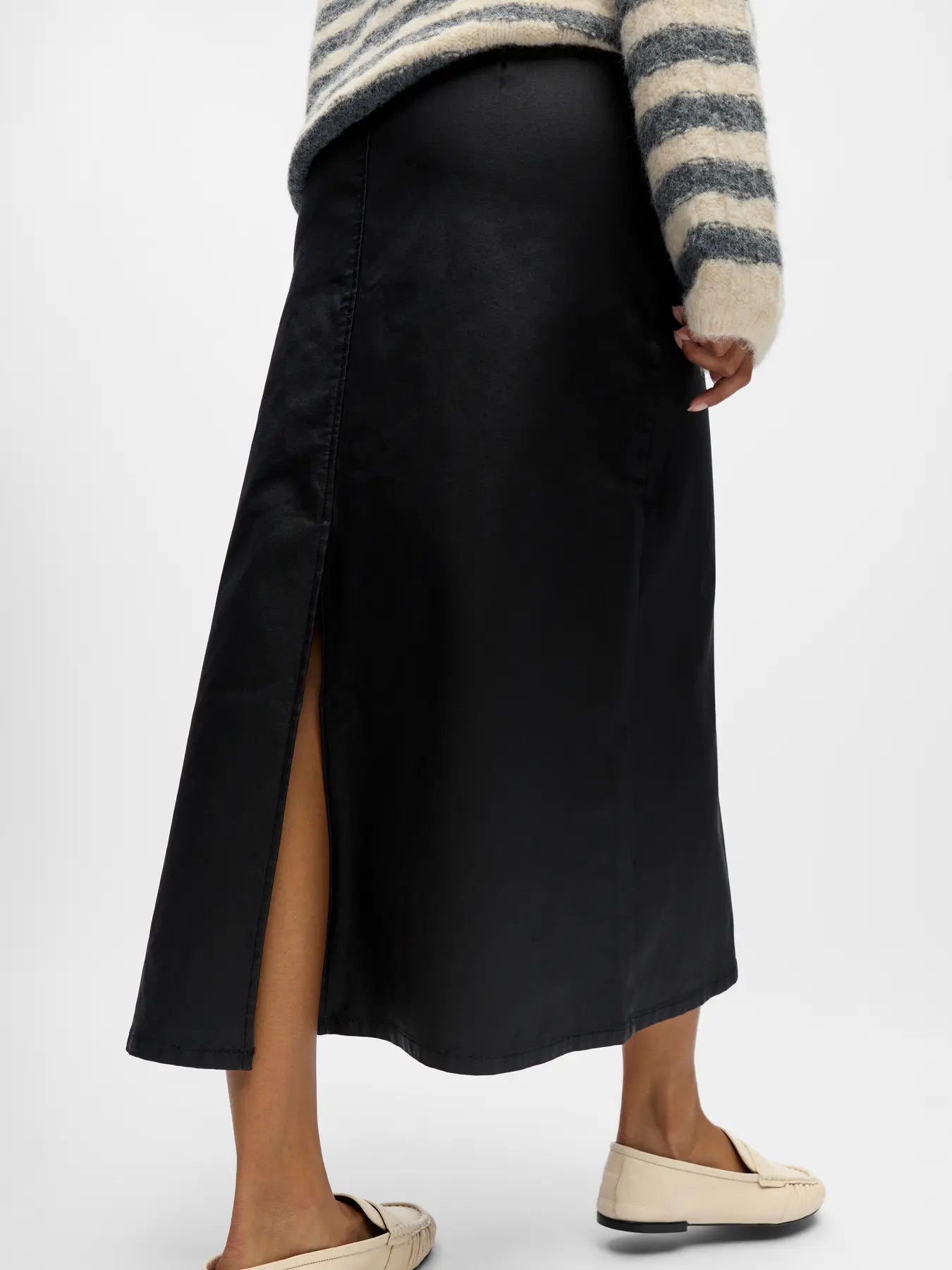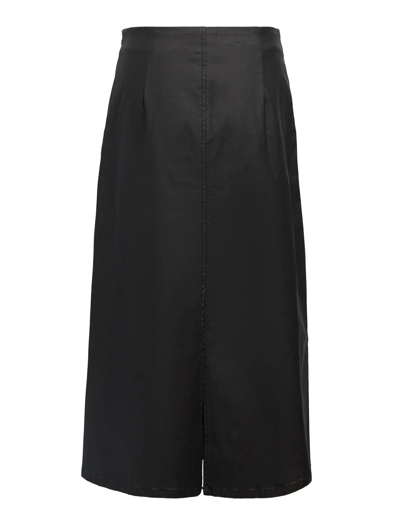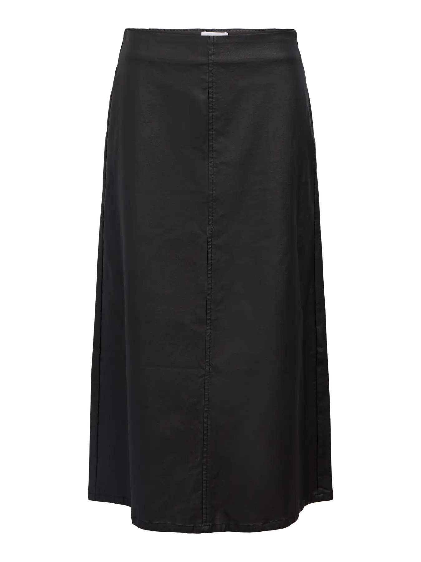En favorit i repris är denna vaxade kjolen ifrån Object. Sprund bak och aställd modell. Knäpps med dragkedja i sidan. Stretchig och skön.