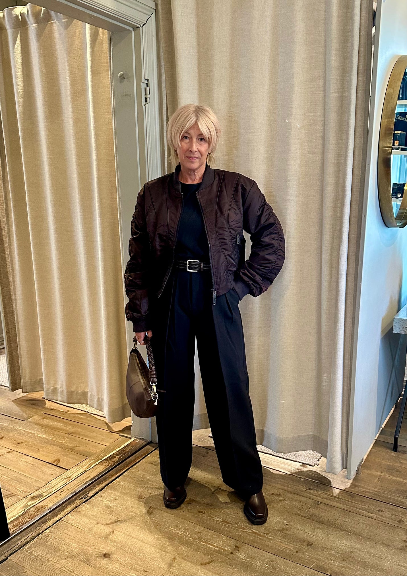 Plaggen köper du hos oss i Tenhult eller här i webshopen: Philina bomber från Gestuz, Bryelle wide pants från InWear, Alicia bälte från Saddler.