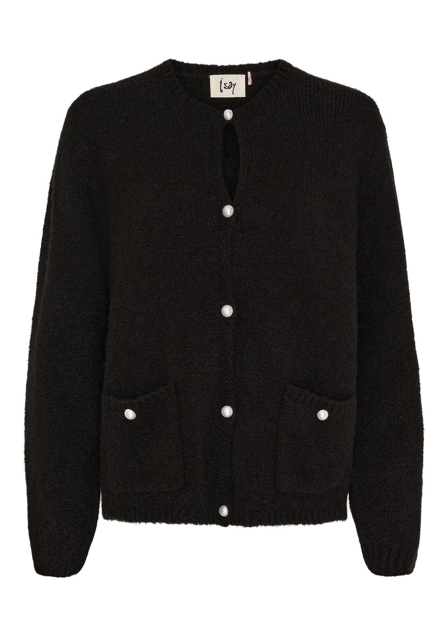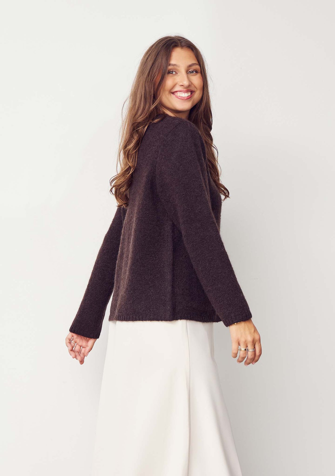 Vi älskar modellen Anna ifrån Isay. En så fin klassisk kofta som kommer i olika tappningar. Denna en variant med rundhals och fina pärlknappar. Rakvid modell. Lite kortare utan att vara kort. Se längd på sista bilden.