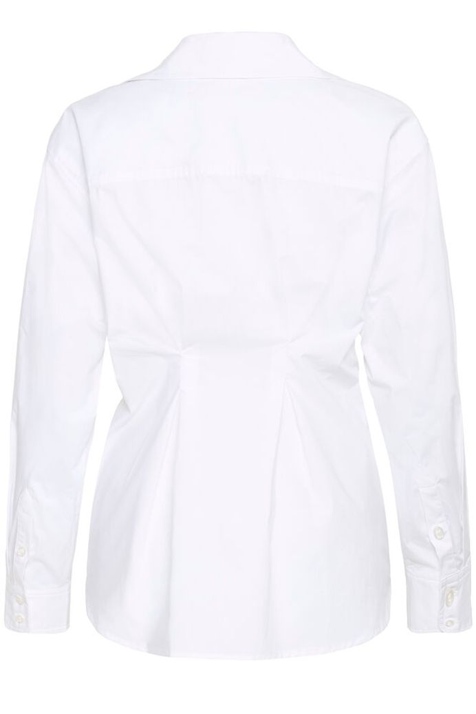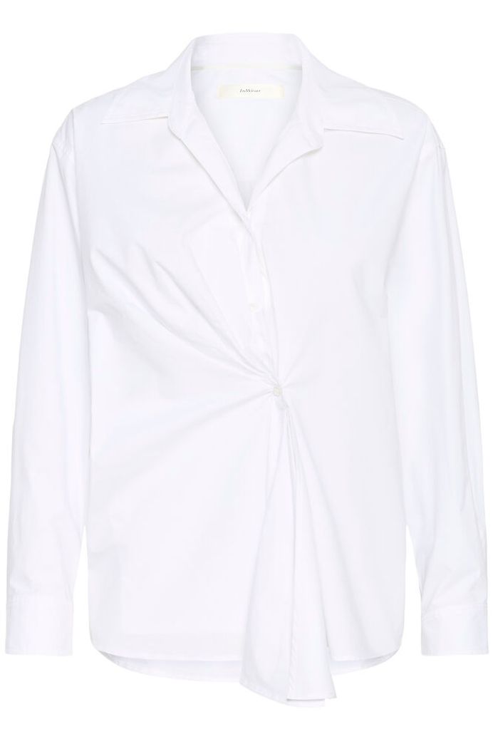 En krispig vit skjorta med det lilla extra! Det är verkligen aldrig fel! Denna med en draperad effekt som passerar knappslån.