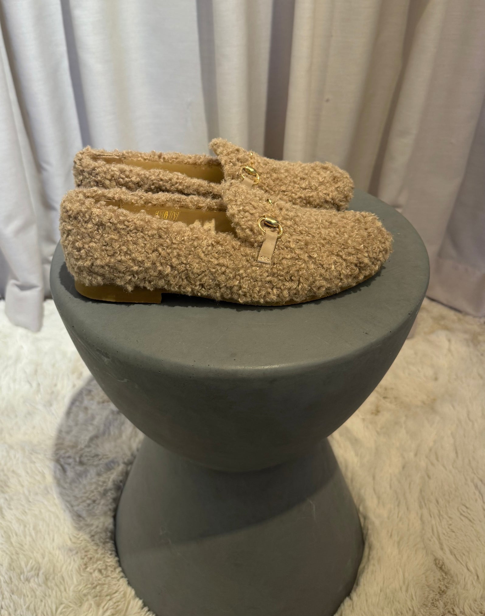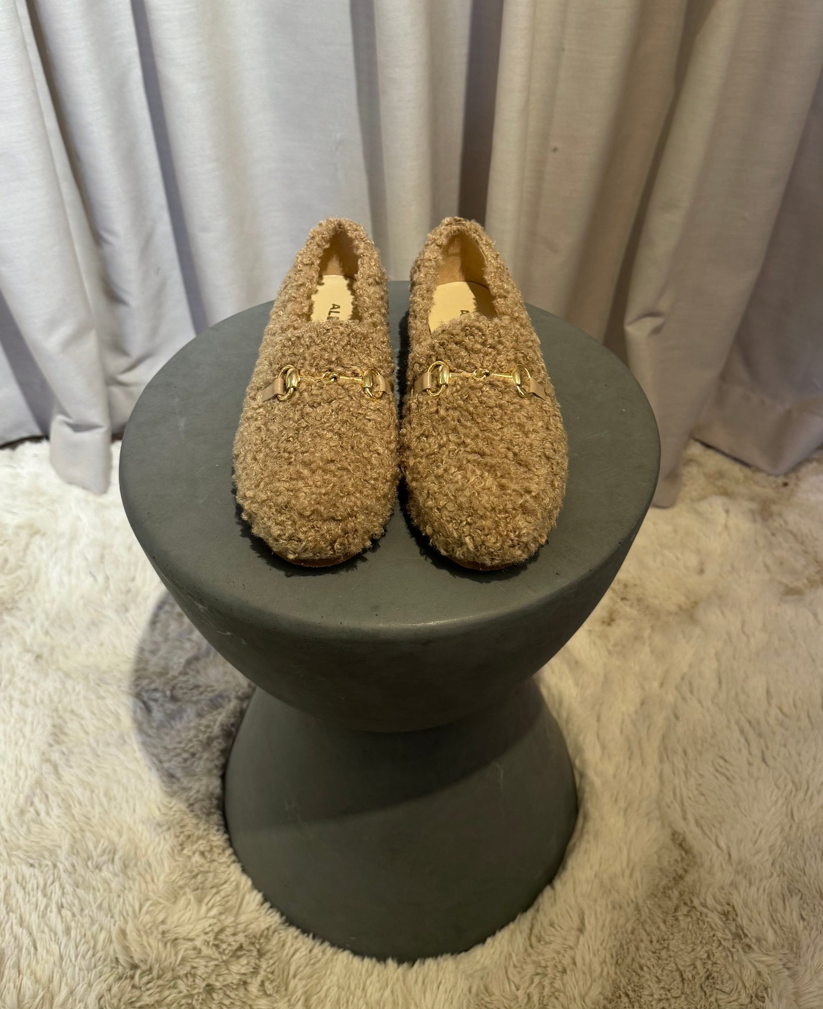 Den här loafern kuinde vi bara inte låta bli! En loaferi klassiskt snitt i syntetisk fårskinnspäls från Alberville. Guldigt spänne och en söm utmed fotens översida som formar foten och naturligtvis fodrad med skinn invändigt. Låg klack på 2,5 cm. Alberville tillverkar sina skor i Italien i fina skinn med riktigt bra kvalitet och bekväma läster.